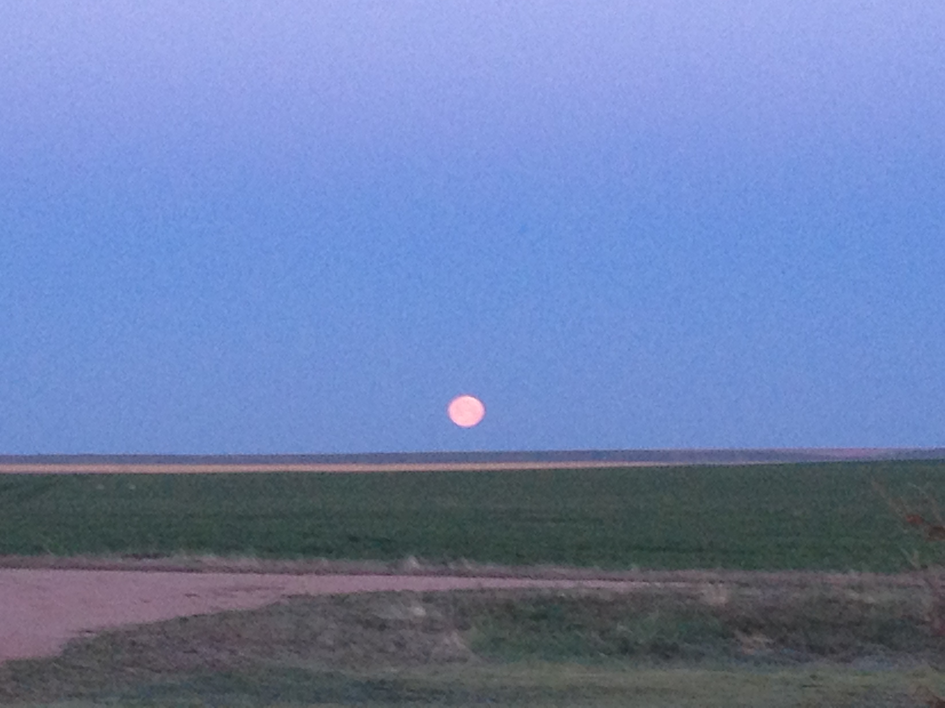 The setting moon this morning was just as beautiful as the rising sun. Blessing. If we take the time to notice, blessing is everywhere. Sometimes I feel so thick when I trudge around as if in a fog and then am brought up short by the blessings all around me. After I run and the chores are done and I finally sit down to write, I look out the window and see two bright little yellow birds flitting around in our trees-playing in the morning breeze. They are like tiny balls of sunshine flashing from branch to branch spreading joy all over the blossoms emerging from the frost. Amazing. This spring is so different from the last several with the cold and the moisture, bringing with it birds we’ve not seen and relief from the 87 degrees it was on this day last year! I don’t know how many people still rely on the Farmer’s Almanac, but it has been right on this year.