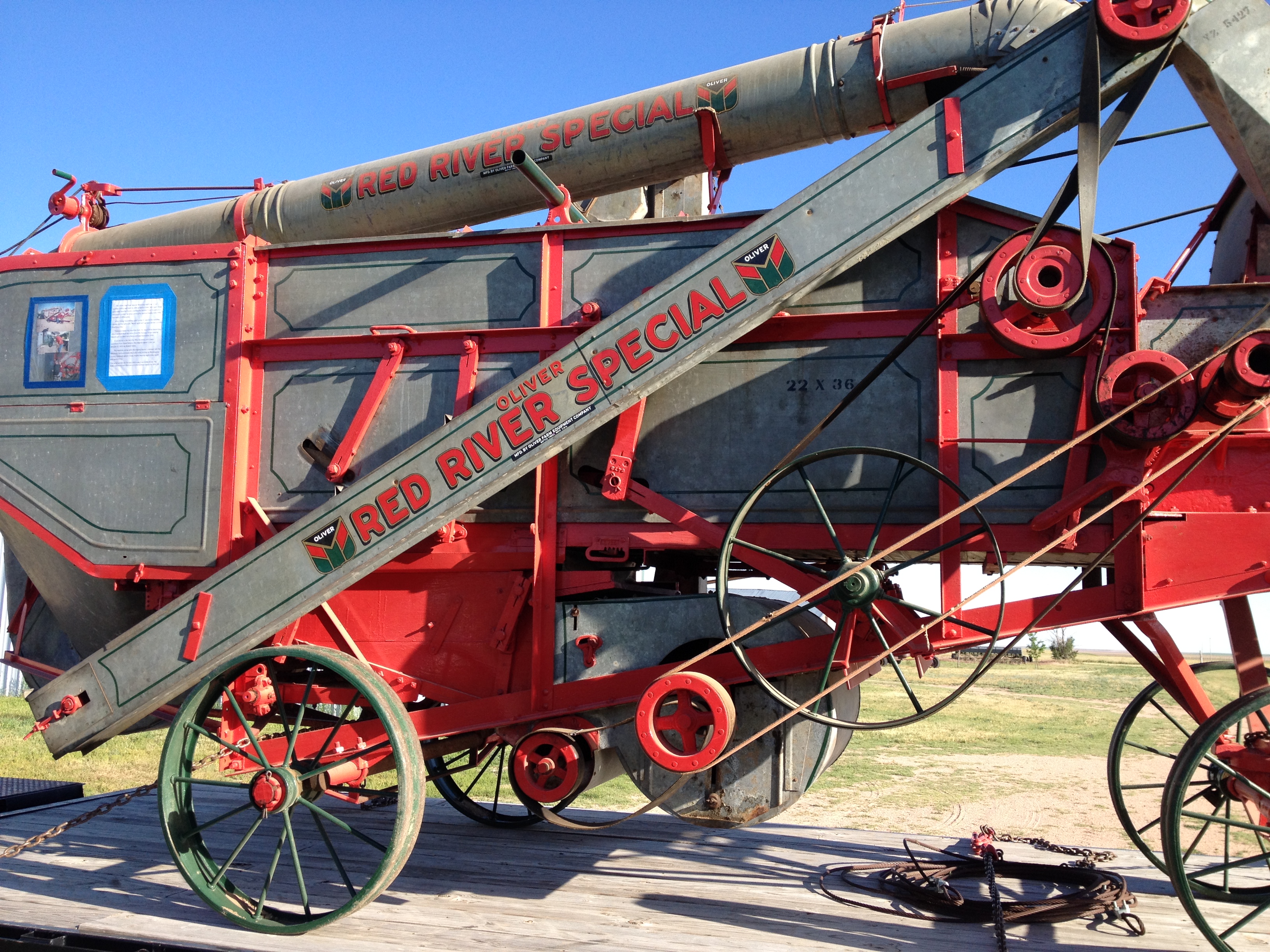 Back in the day, there were so many strong minds that built what we have today. This last weekend, we went to an antique farm show celebrating this heritage. This machine was an early day threshing machine, restored in all its beauty to thresh wheat at this show. You can see that it took a long belt hooked up to an antique tractor to power it, a wagon full of wheat bundles to be threshed and a little flared-box wagon to gather the grains after it was separated from the chaff. And imagine that before this machine was engineered, there were horse drawn machines.
