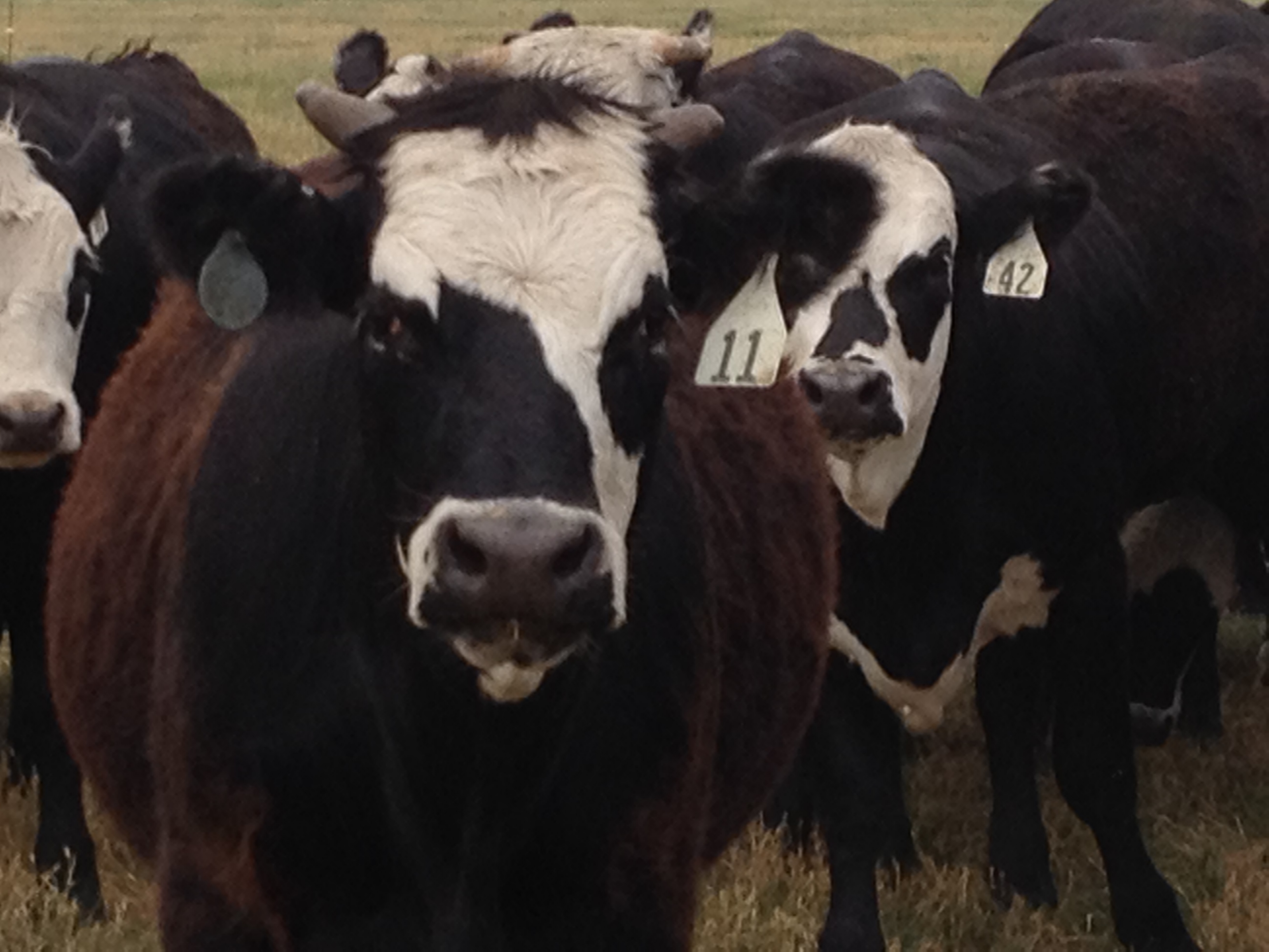 Modern cattle all descend from the ancient aurochs, domesticated on the Asian steppes as much as 10,000 years ago. Wow. They had huge horns as depicted in the cave drawings in Lascaux, France. And the DNA of these old beasts rests in the sweet faces of our black baldy heifers! I love to be in the pasture watching the transformation from kick-up-our-heels calves to more mature heifers nurturing their first calves that’ll be next year’s babies. There is so much life in the pasture, from the bright blooming cactus, to the pale wheat grass growing around the little pond, and all the birds and bugs, skunks and ground squirrels, and that badger we know is there but who rarely shows his face above ground. This number 11 heifer loves her cotton candy—okay it’s cotton cake, but I call it candy. Once they get a taste for these thick pellets, you can’t go in the pasture without being mobbed. When I checked water and mineral yesterday, she followed me all around, licking the back of my shirt and giving me that expectant look when I turned to see what she was up to. You can still see the baby in her face, even though I hope she is also carrying her first calf. It makes me wonder how those ancients went about domesticating the auroch. What was their version of cotton cake?