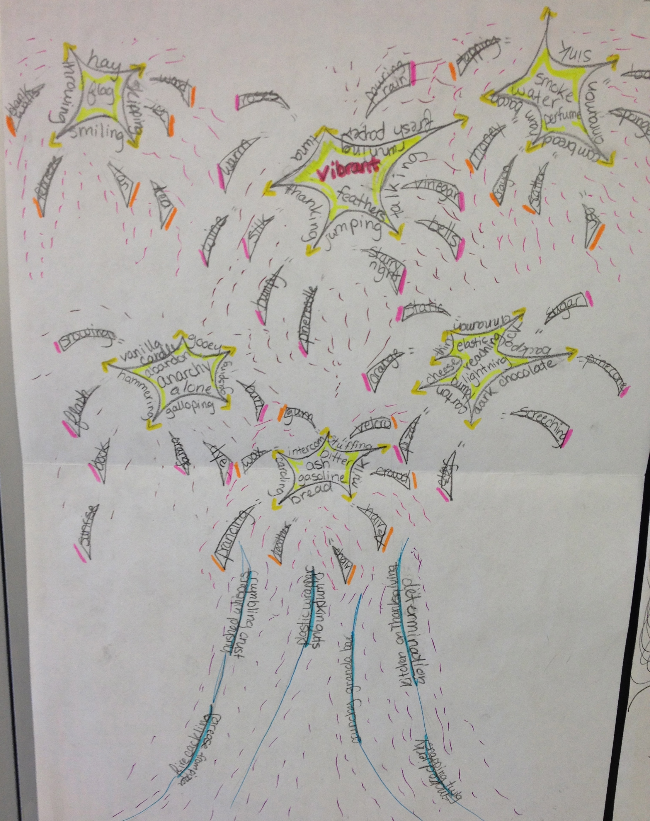 We started by reading some poetry and sorting through the words to see how many were sensory words, action words, abstract words and then just plain fun words. Then we made