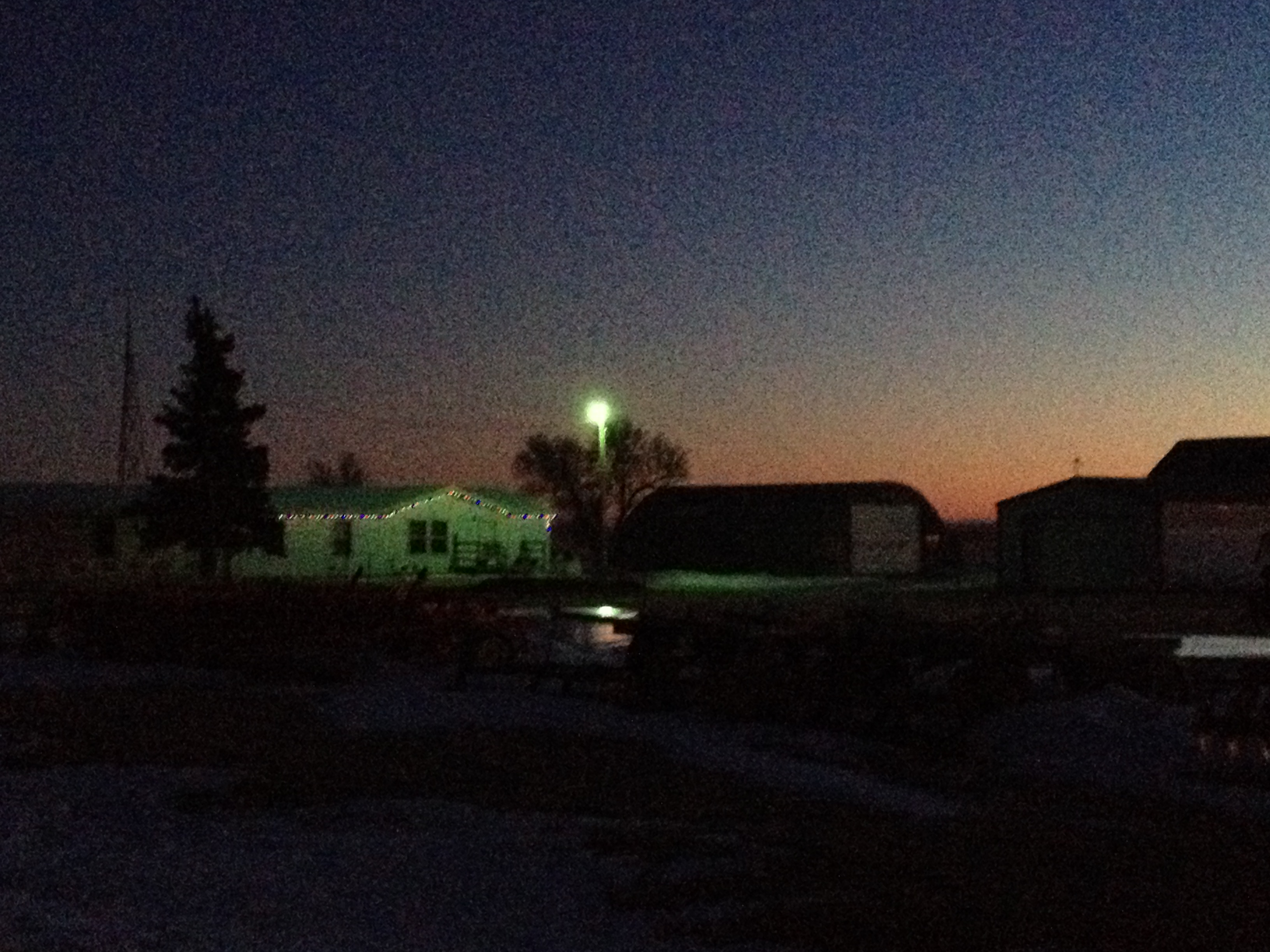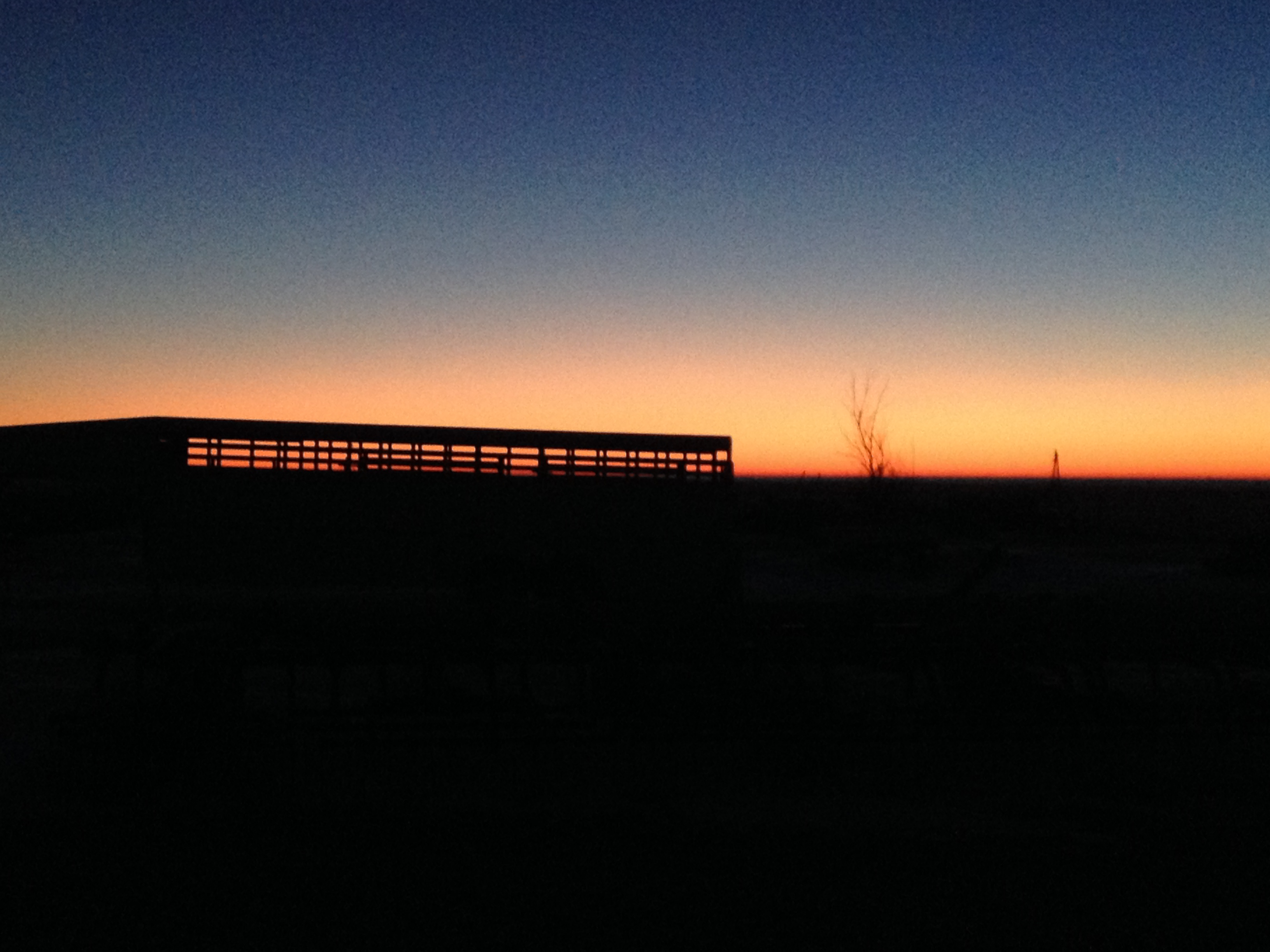 The secrets of the day are held in the rising of the sun, and the rising this day was full of the promise of secrets revealed. Structures on the farm, hidden by the moonless night, are slowly made tangible again with the revelation of dawn.