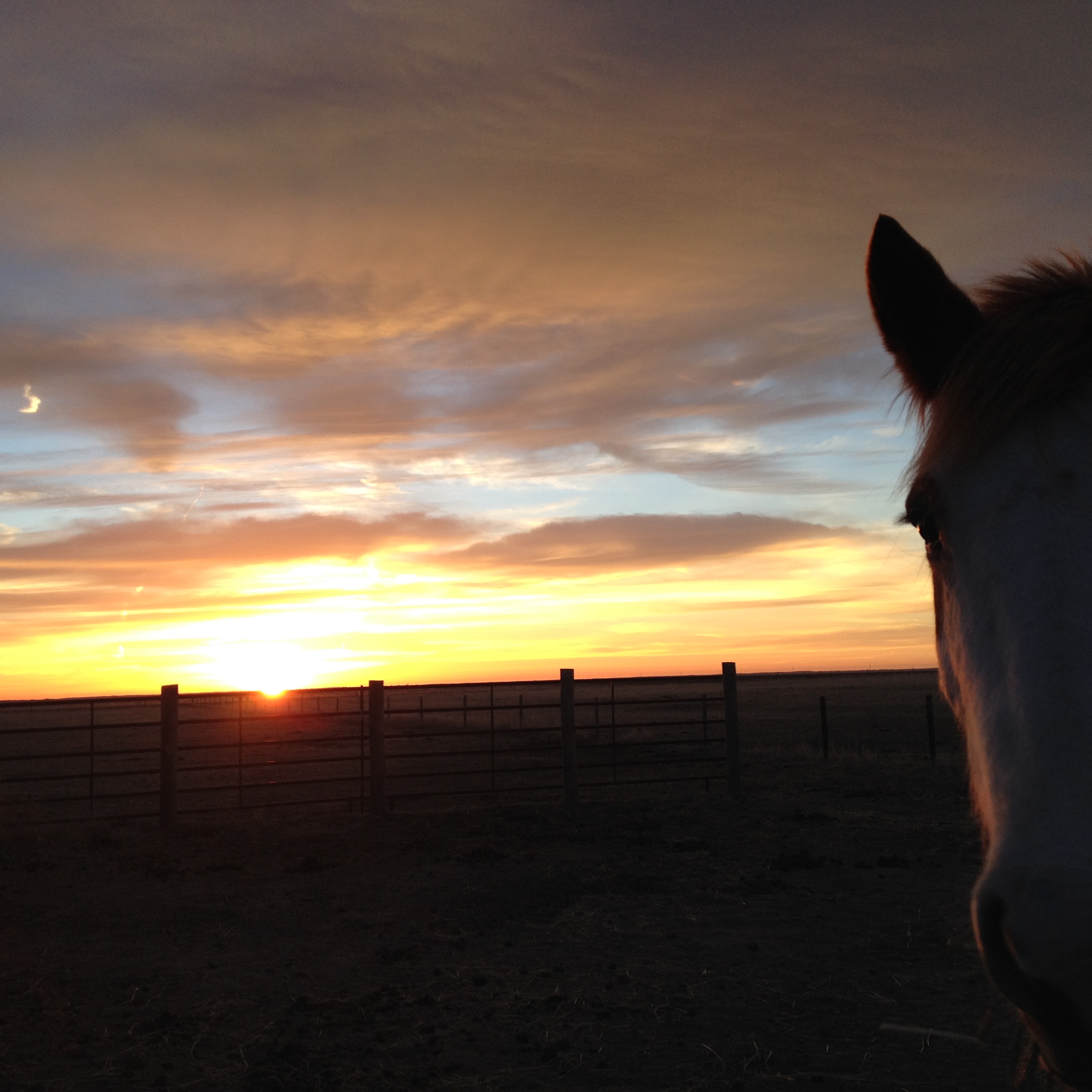 We didn’t do anything spectacular this weekend, but there were so many instances of simple burning grace. In the thick hoar-frost on the tall pine tree and the heavy fog we watched roll through the rows of round hay bales, in the visible breath of the horses and the warmth of their coats, in a walk under the clear blue sky, in shared meals after a long absence, in easy conversation with good friends, and in the pinks and oranges of the rising sun.