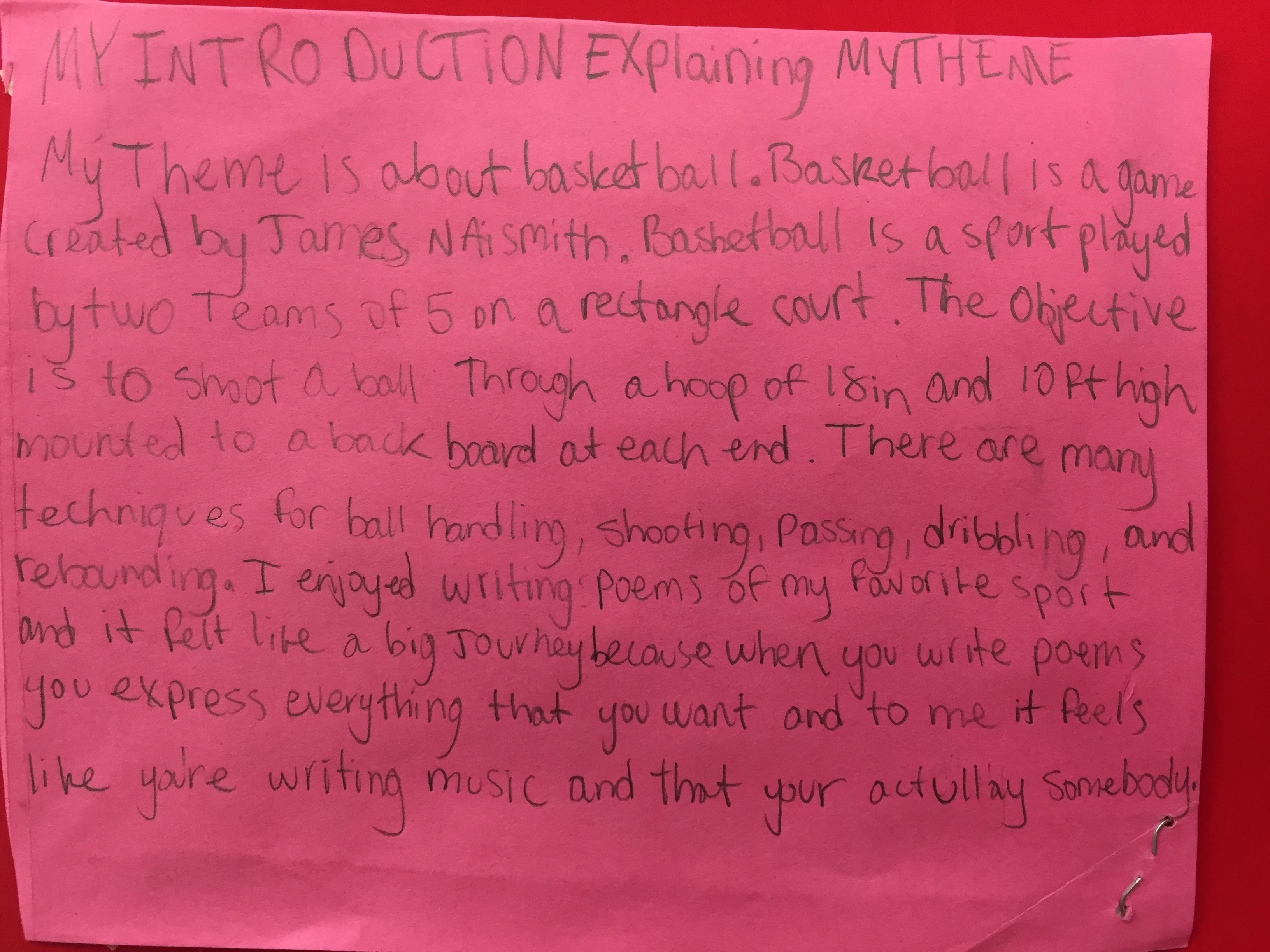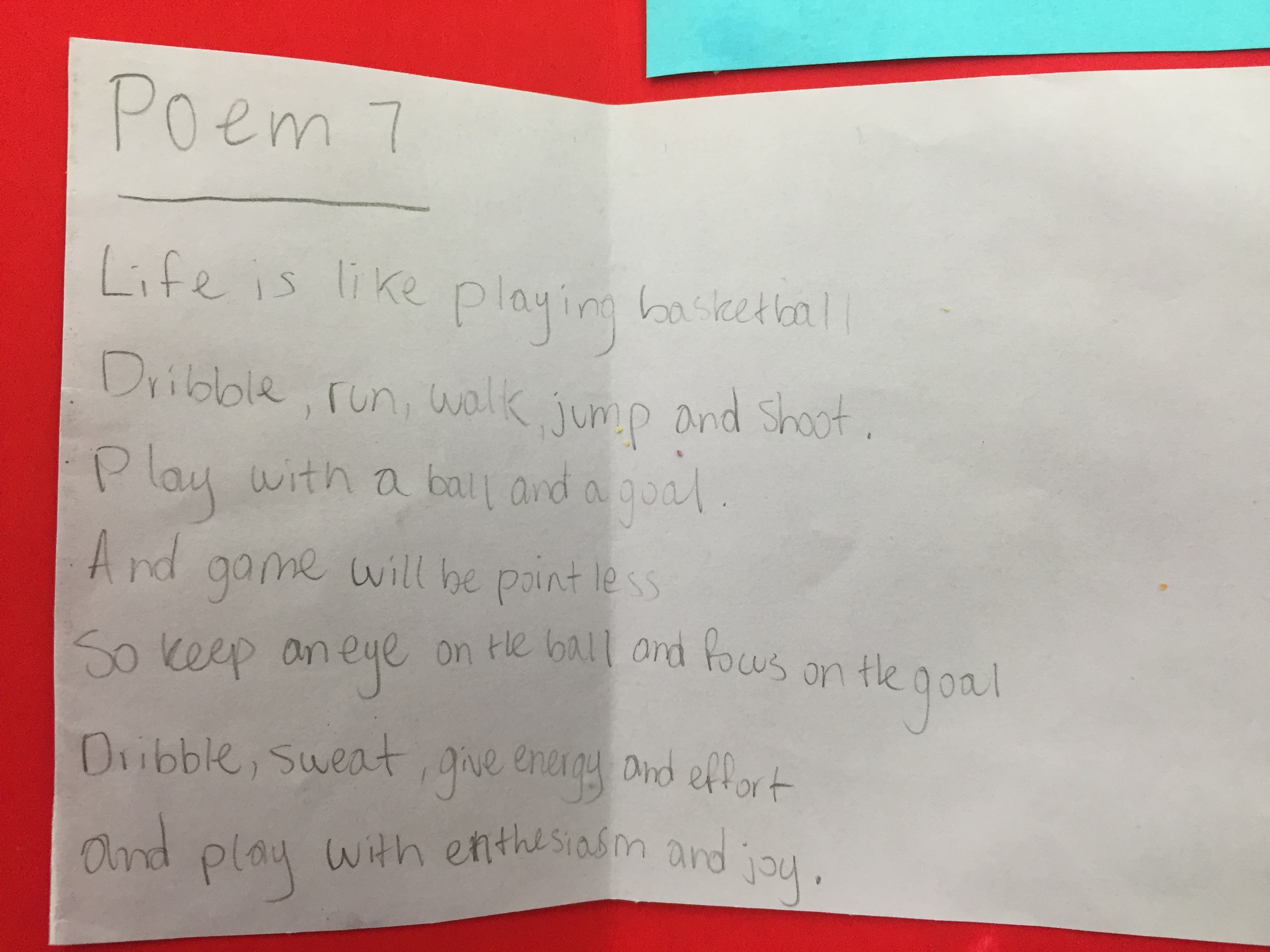 things to be involved in and you didn’t have to be in a sport to have a “team.” Many of my students play multiple sports but many of them also have one that is their favorite. The first poetry project I looked at yesterday was one on basketball. As the students presented in class, I was struck by how many projects included sports and they’d written some awesome sport poetry.