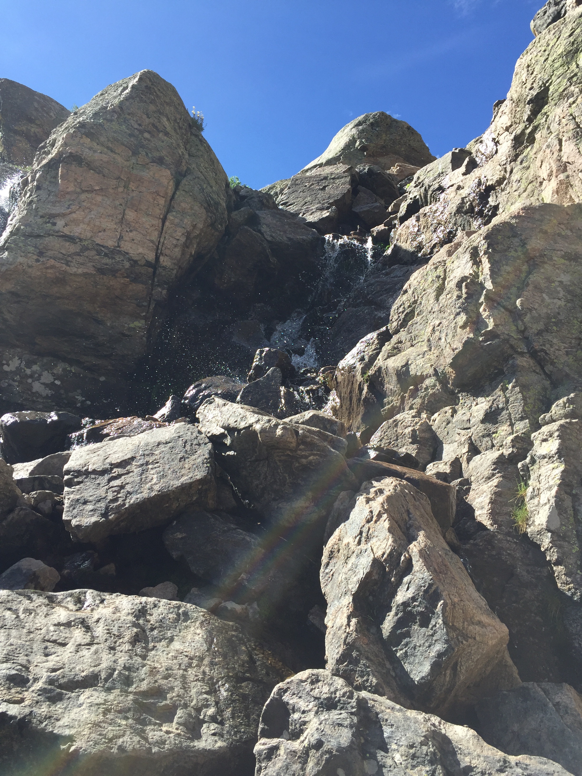 waterfall and had to scramble up the side of it to Lake of Glass hanging there at the top of the falls. It was dicey and wet, making rocks slippery…but I knew coming back down would be a challenge for my strong sense of vertigo. Lake of Glass was breathtaking.