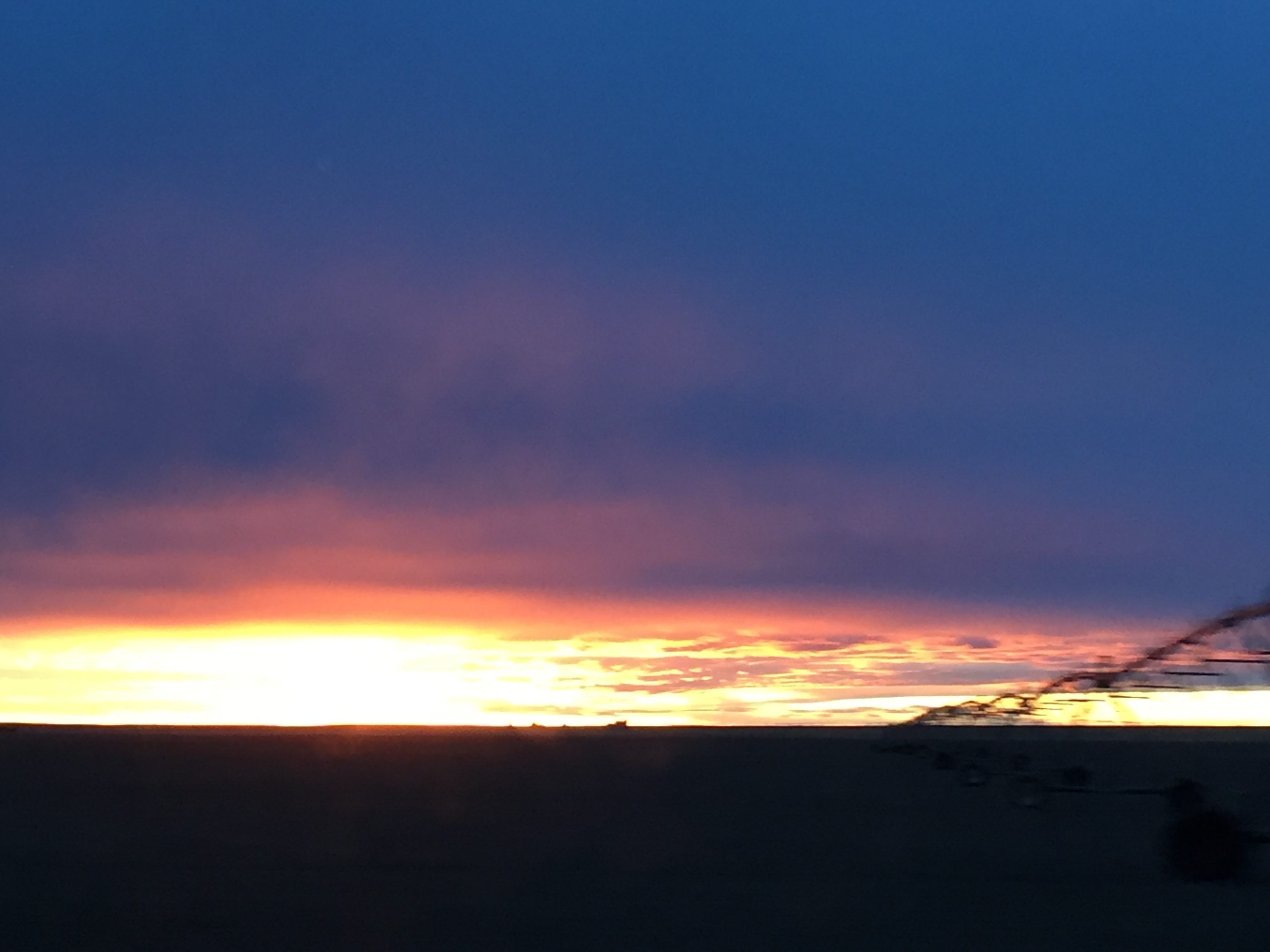 Crunching gravel kept the rhythm of my run, changing to patches of a kind of clicking sound when I ran into places where the road grater had pulled goat heads into the road bed from the ditches. High lines hummed a low kind of whine, as if passing some communication along from pole to pole, as I passed. The black sky was overlaid with steel grey clouds obscuring most, but not all the stars; the remnants of the super moon still glowed in the small crescent. What was missing were Jupiter and Mars, having been swallowed by the hungry clouds like most of the stars.