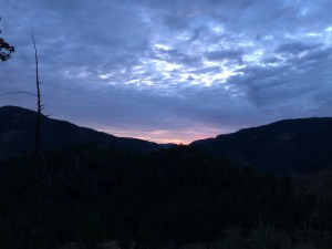 Headlamps shone on the switchbacks in the first steep miles hiked in the dark. But the sun was lovely in its rising and we were on top of a vista to see it at that point. Thankfully, the day was mostly cloudy as we were both concerned about how much the heat can zap our energy.