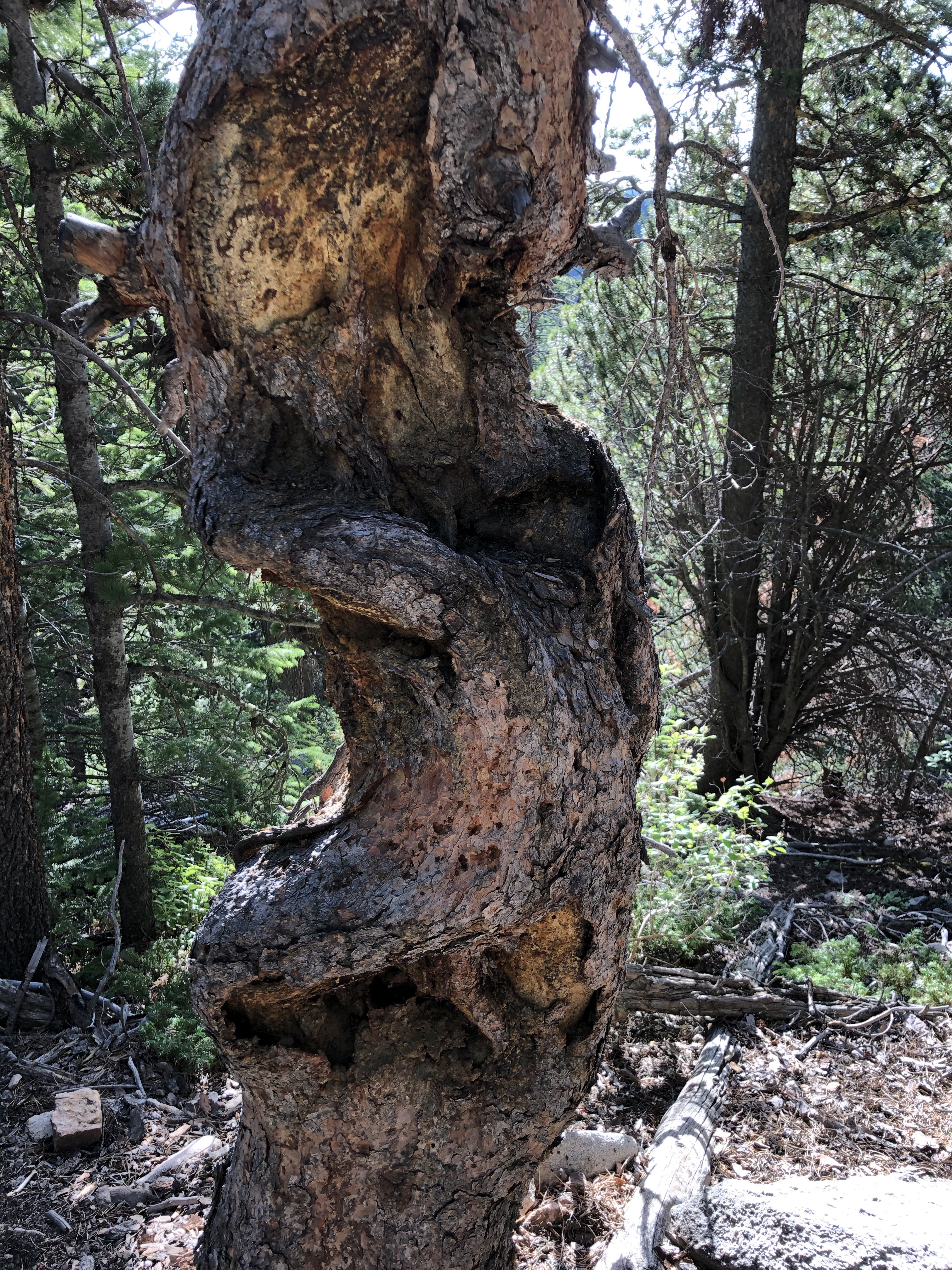 I was thinking about the resilience of trees as I hiked along under their cover of cool shade. What force can bend a tree around itself? And the tree yields but continues to reach up. Other trees have fallen, their roots torn from the earth, and yet new trees grow right out of that decay stretching up to sun and blue sky. The old dying to give life to the new.