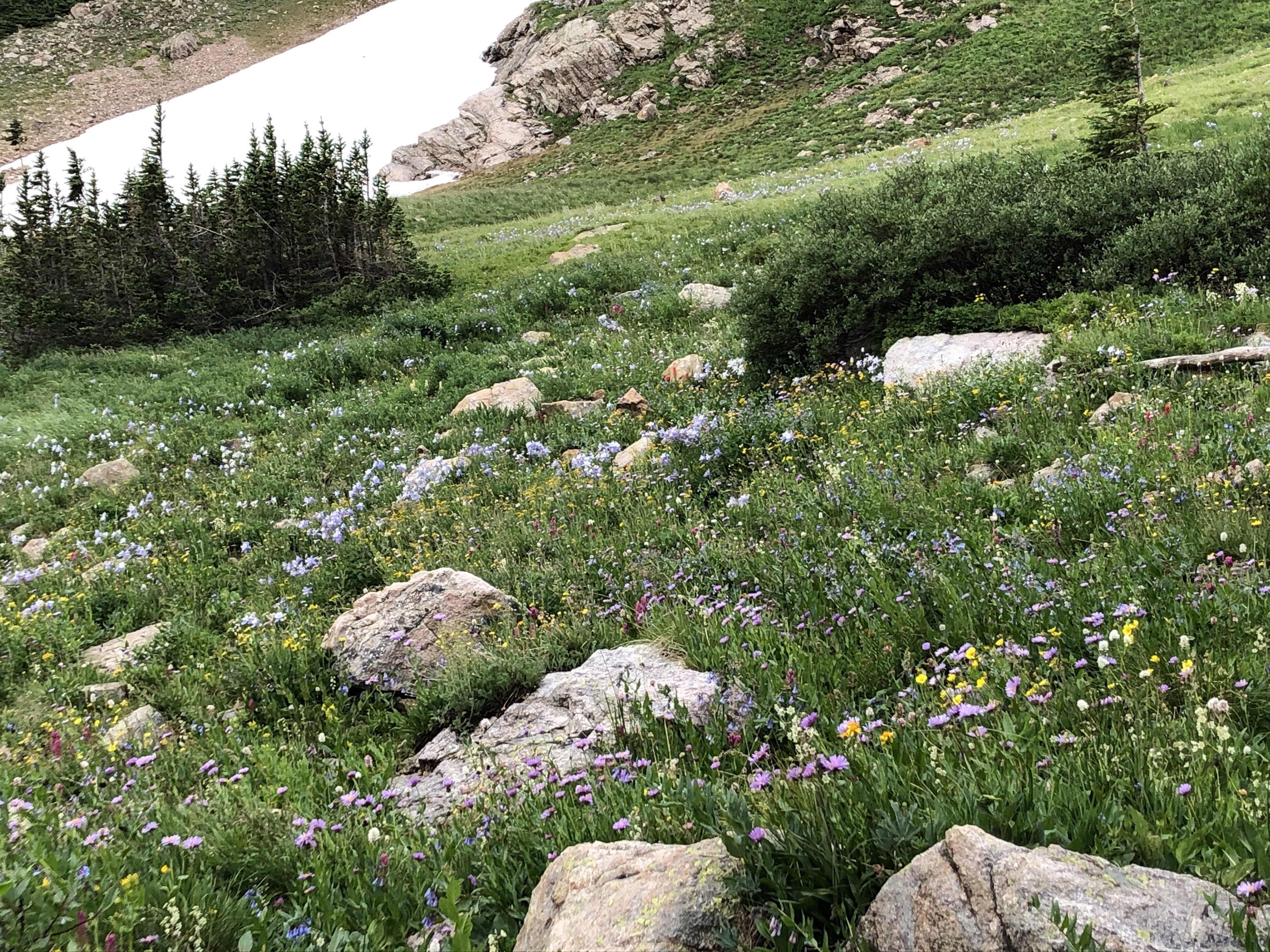 I think of my life in seasons more and more as time goes on. I sometimes feel this sense of invisibility as one leads into another. Hiking season is precious to me, providing lots of solace to a weary spirit. It stretches out before me toward the end of spring and then seems be cut off abruptly when August demands its due and the start of school begins. But there is much to look back on, remember, and smile about. And we have yet another week to make one more climb into wild flowers, flowing creeks, and rugged beauty as far as can be seen.