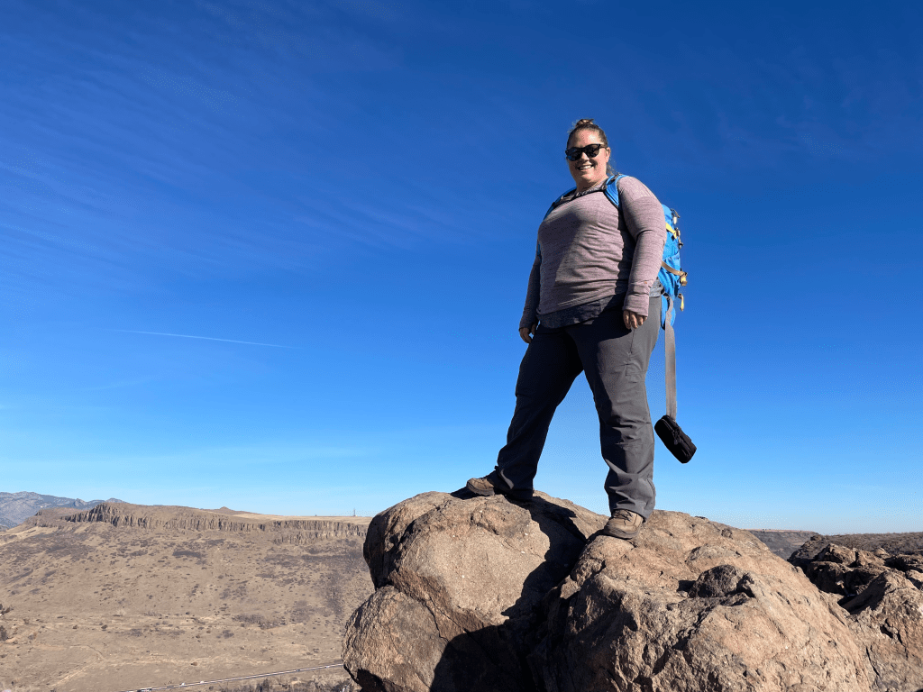 This was not our usual hike through peaceful forests, but a place we’ve wanted to hike up to, that is just too hot, too exposed in summer. We sat outside at Bob’s Atomic Burgers one summer evening, post-hike, and looked up at the towering South Table Mountain. Stories of a dance hall up there, the old scars from the cable railway still visible, and earlier than that, people rode donkeys up the easier incline to dine at a café. Then, the Ku Klux Klan took over the building as a meeting place. It burned to the ground in the late 1920s.